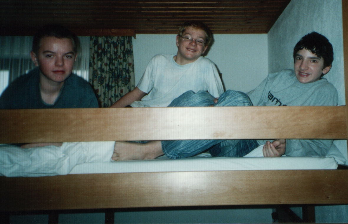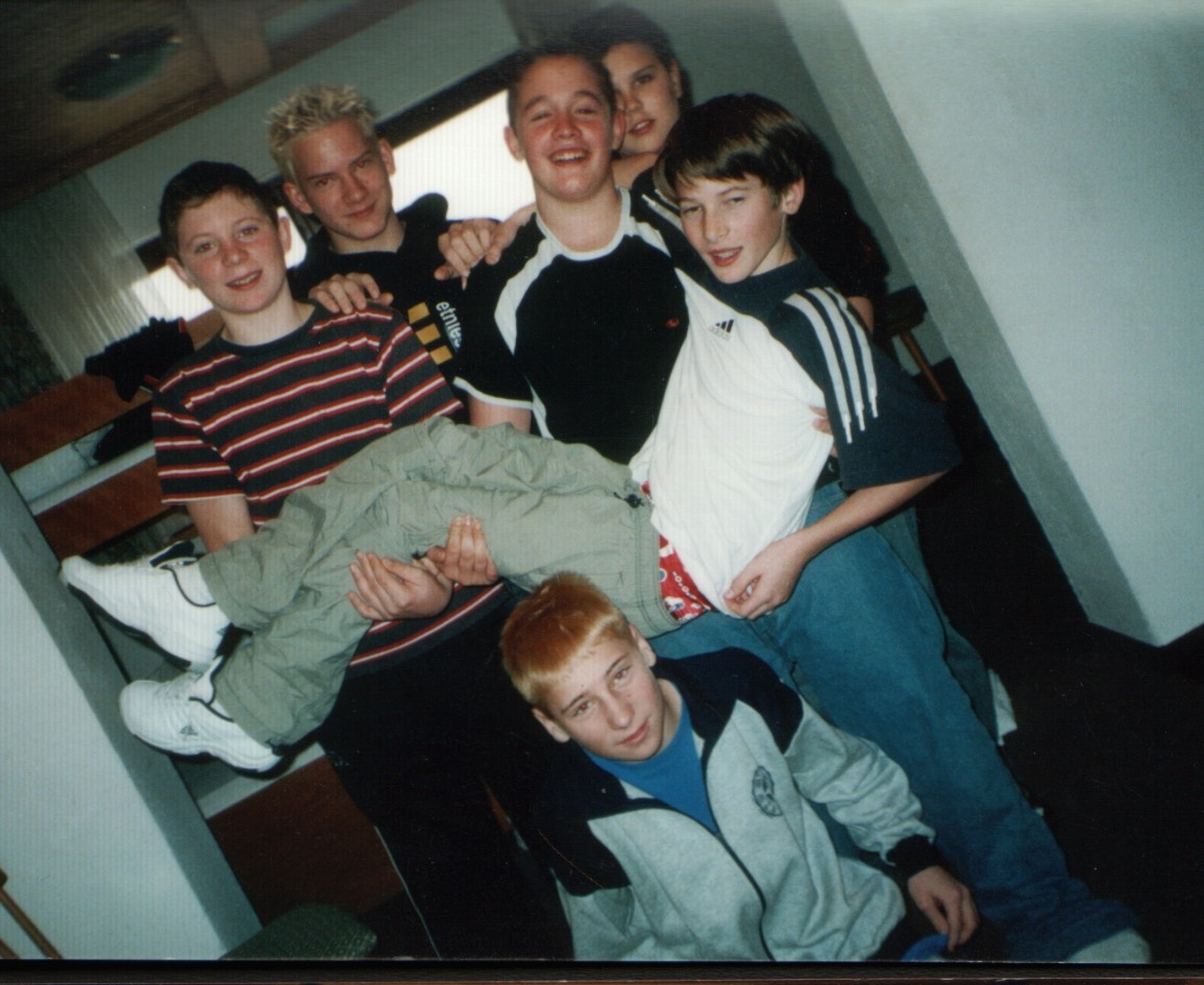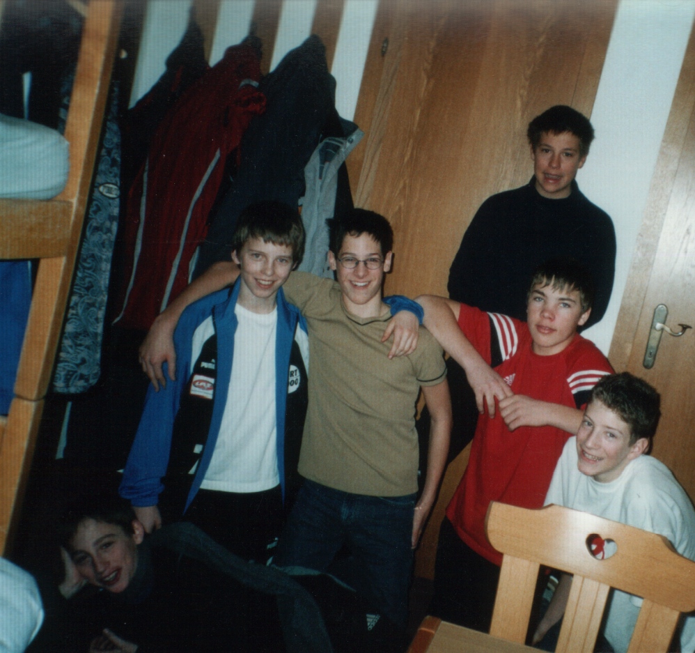 Endlich alleine! In der vierten Klasse fuhren wir ohne Regelklassen vier Tage Schi fahren und zum Wieslechnerhof nach Schladming gefahren. Das waren mit Abstand die schönsten Kurstage in unserer Hauptschulzeit. Die Mädchen überreichten unserem Klassenvorstand eine kunterbunte selbstgestrickte Haube, die er sich bei einer Schnitzeljagd verdienen musste. Skigruppen: 1) J. Jurcsa: Jenny, Nina, Zeller, Etti, René ,Widhalm 2) B. Jurcsa: Yvi, Silvia, Erik, Dominik, René, Kevin, König, Max Snowboard) M. Hofbauer: Seppi, Niki, Sazi, Hofi, Didi, Matchi Wir gestalteten zwei Abende, einen davon mit selbst erdachten Spielen und